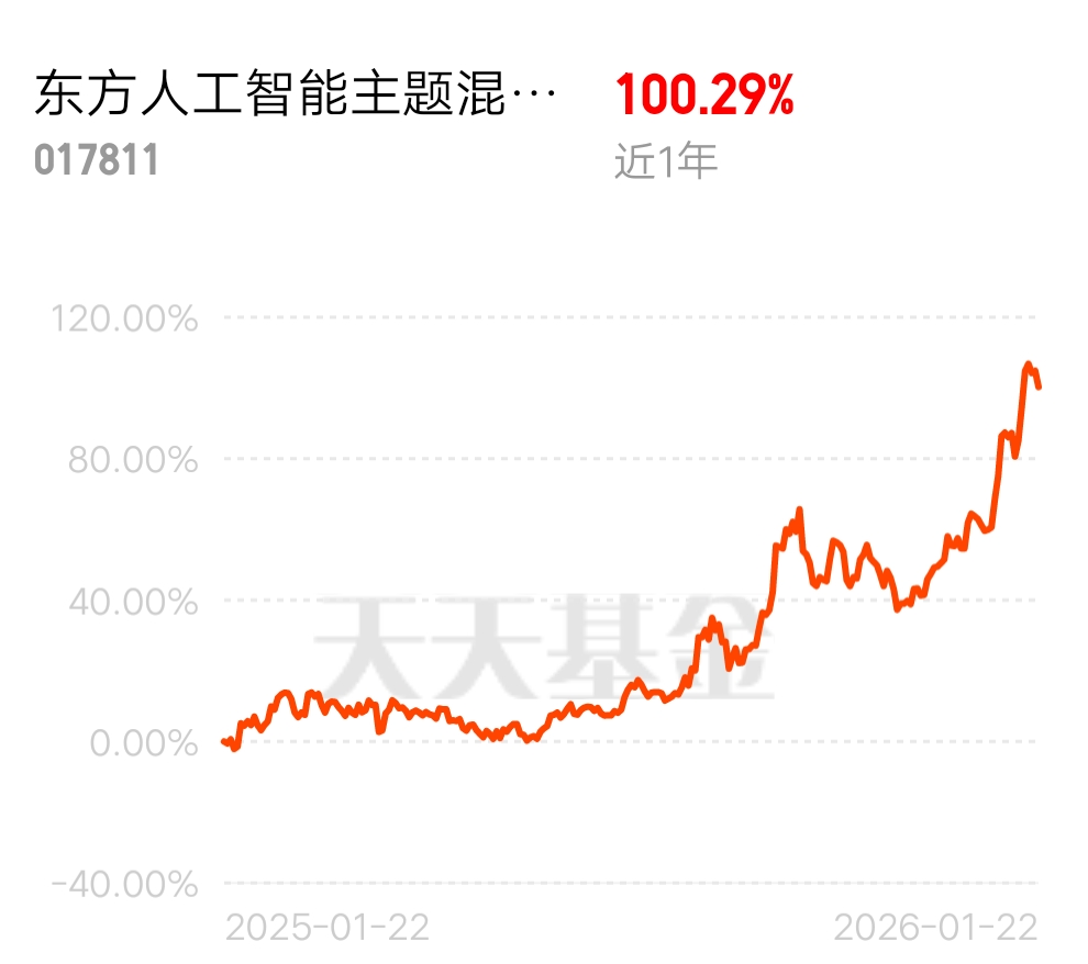 $东方人工智能主题混合C$聚焦人工智能主题,精准覆盖大数据、智能芯片、算法技术及AI+安防、医疗、汽车等应用领域,完美契合国家战略导向与行业发展趋势。从业绩来看,这只2023年成立的基金爆发力十足:成立以来累计收益超123%,大幅跑赢同类平均的41%,今年以来近25%的涨幅在同类基金中排名前列,用实打实的数据证明了其选股能力与行业把握力。其前十大重仓股集中在中微公司、北方华创、拓荆科技等半导体与AI核心领域龙头企业,持仓集中度高且质地优良,既享受了行业高增长红利,也彰显了基金团队对产业链的深度研判。