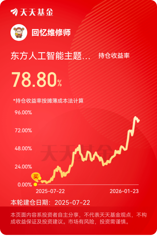 综上所述,我提前布局了东方人工智能主题混合C(017811),因为严凯基金经理的投资经验相当丰富,他对于人工智能行业的研究相当深入。@东方基金