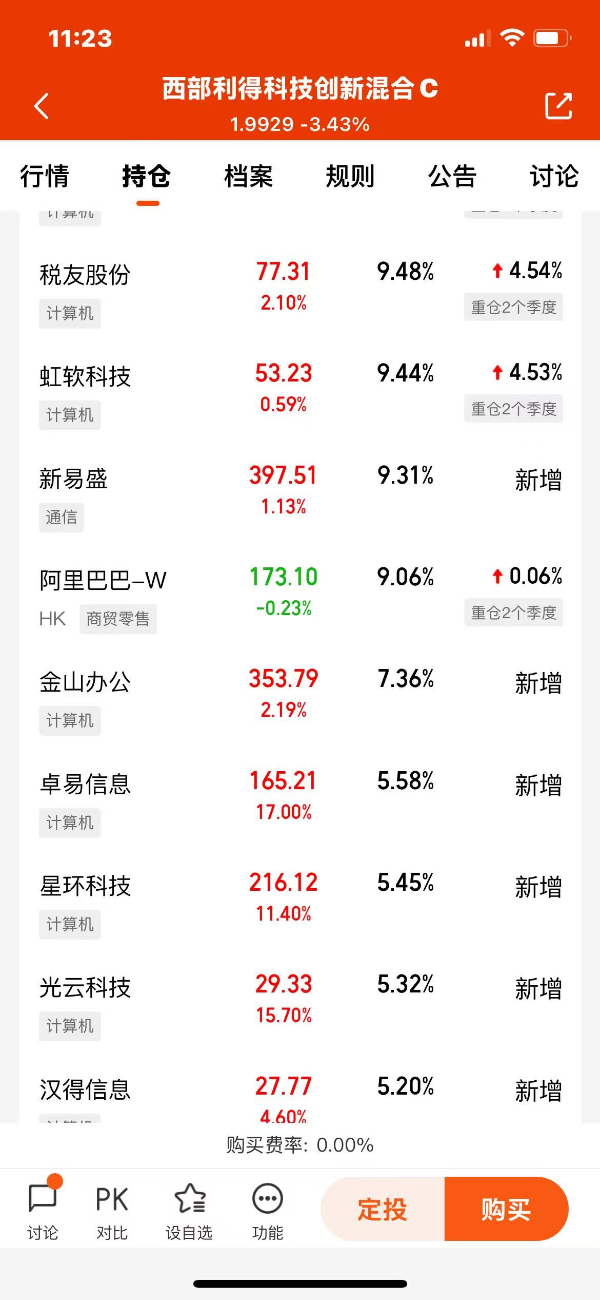 看了一下前十大重仓,卓易信息,星环科技,光云科技等不少涨幅都超10%