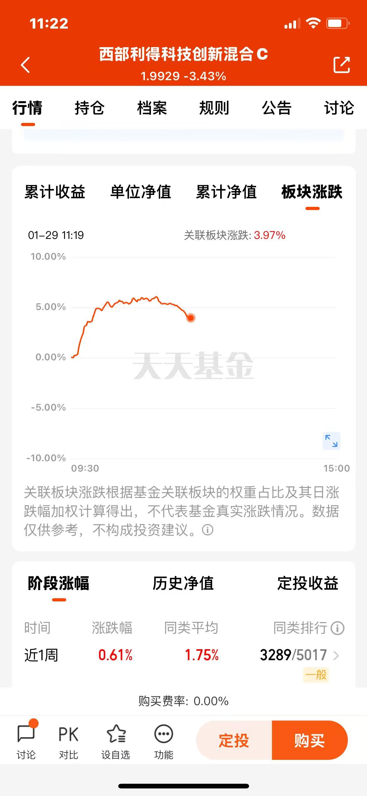 今天早盘三大指数震荡,市场上周期板块震荡,而AI方向则大涨,看来要轮动到了;盘中估值来看$西部利得科技创新混合C(OTCFUND|020065)$一度涨超5%