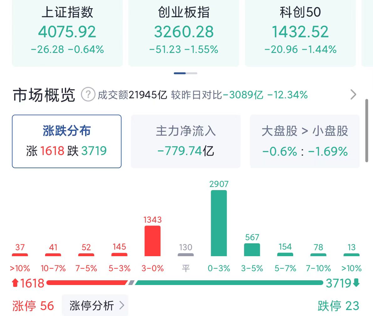 - 创业板:3260.28,-1.55%,低开单边走弱,跌破3300,3250有弱支撑,均线空头排列。外围利空+资金出逃+节前避险,今晚美股科技再调,明天可能还得难受。