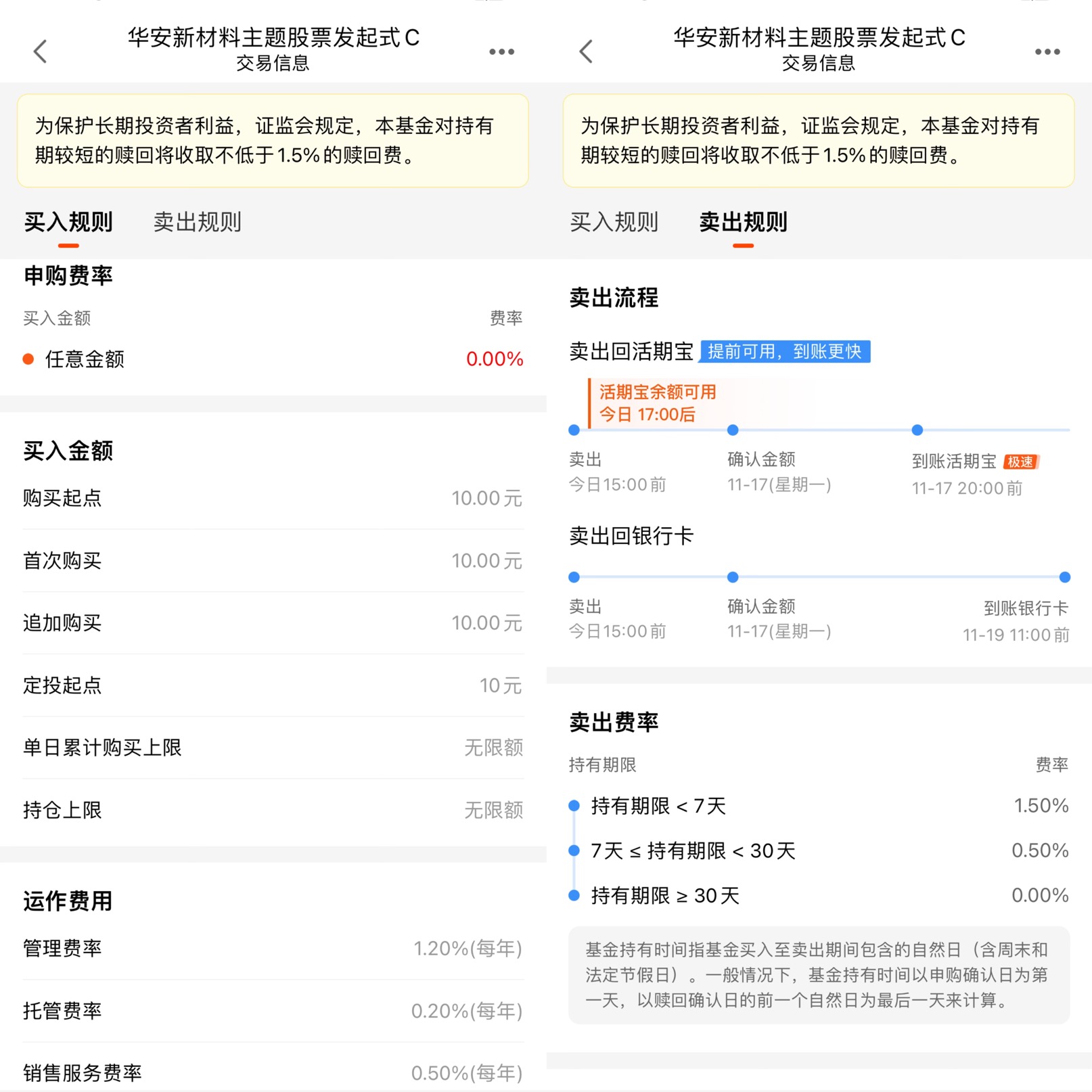 买基金除了看收益,还要看费用——毕竟“省到就是赚到”。这只基金是C类份额,申购费直接0%,不用像A类那样掏1.5%的申购费;赎回费也很友好,持有超过30天就免赎回费,就算你短期想调仓,只要拿够30天也不用花钱。