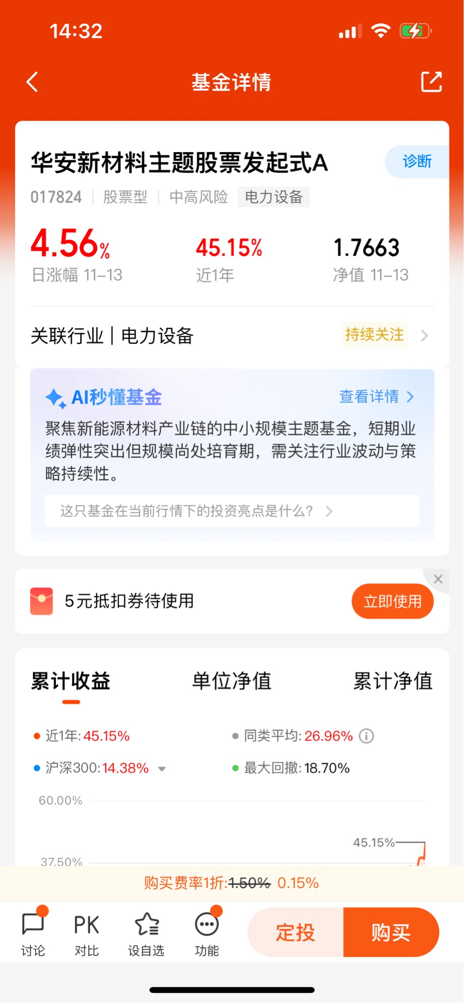 其实买基金就像交朋友,得看“三观合不合”——这只华安新材料C的赛道、业绩、持仓、费用,刚好都踩中了我的投资逻辑,所以我非常看好!当然,基金投资有风险,我也不是说它一定不会跌,但从长期看,只要新材料行业能持续增长,这只基金大概率能给我带来不错的回报。