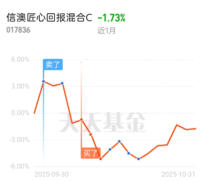 回看一下,三季度跑赢300,跑赢基准许多,可惜我在10月23日清仓过早,还是持有化工比例较高。$信澳匠心回报混合C$