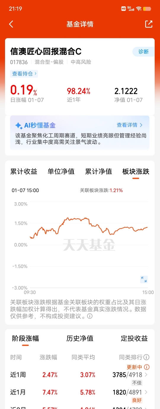 今天板块上涨1.21%怎么变成0.19%的偷吃太多了,请基金经理出来解释一下否则投诉12386