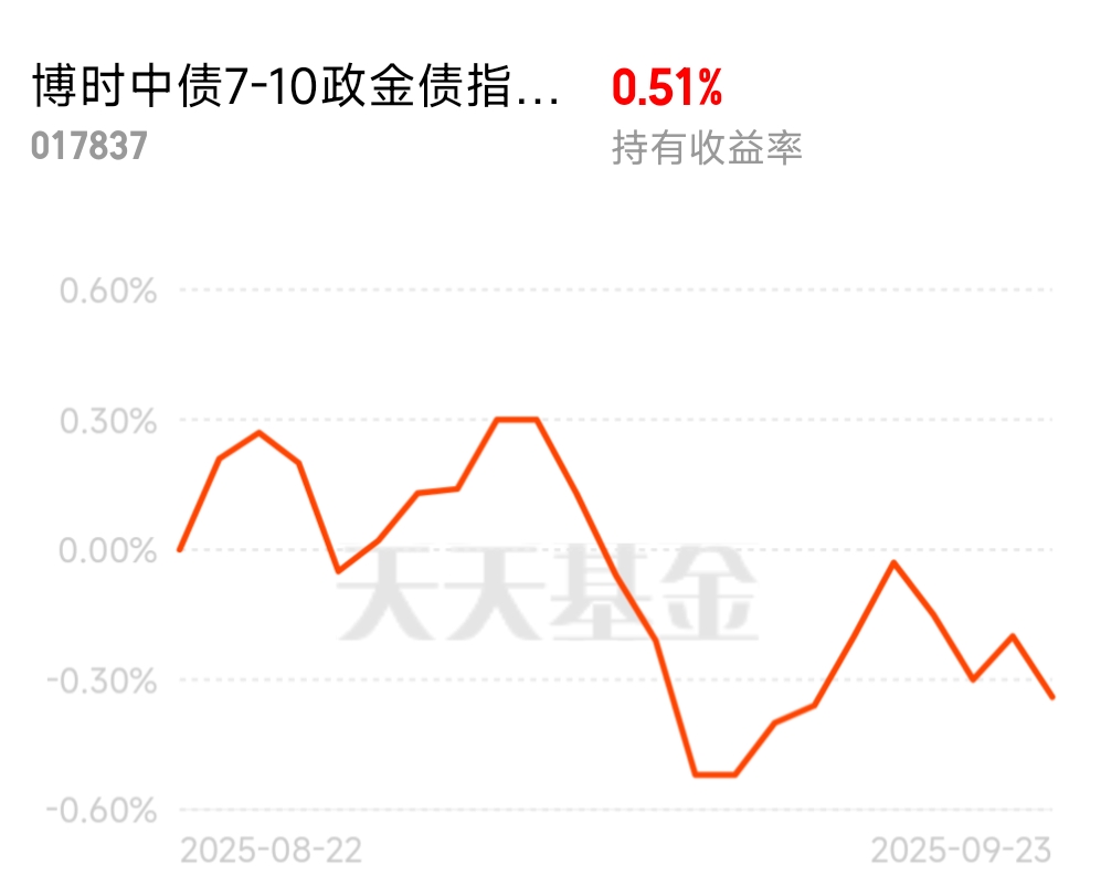 利空差不多消化完了,央行不断释放宽松信号,感觉10月有戏,现在净值在谷底,分批慢慢加着等反弹~$博时中债7-10政金债指数A$