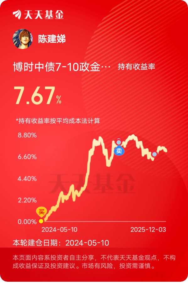 跌了就补点,久期长的降息时涨得可能更猛。现在利率低位,再降时利好空间大#晒收益#