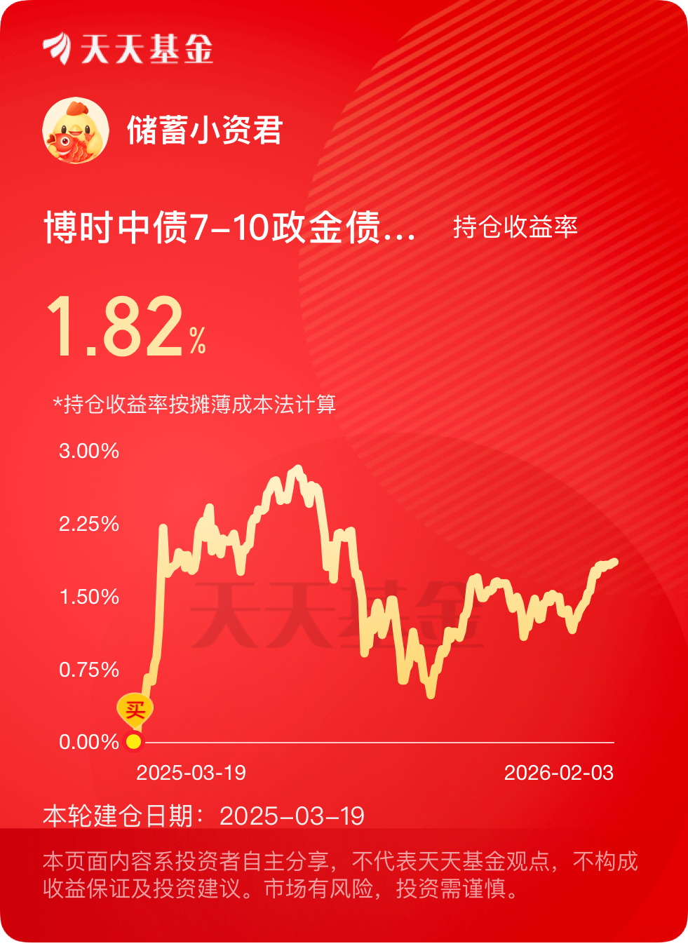 成功收蛋了,不错~二季度降准预期挺强的。这基久期长,利率一降肯定冲在前面