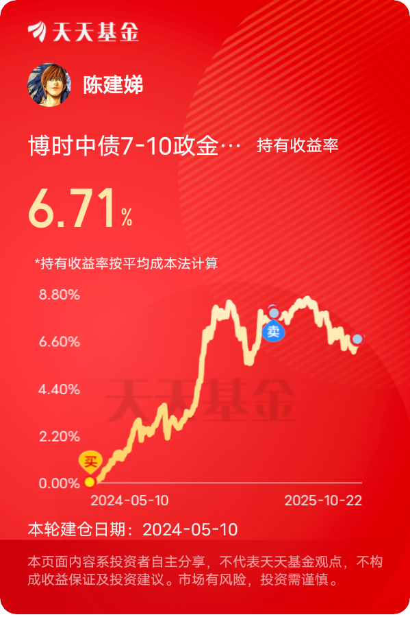 中长期利率债对货币政策敏感,最近降准预期又起来了,7-10年期限弹性大,配置价值高#晒收益#