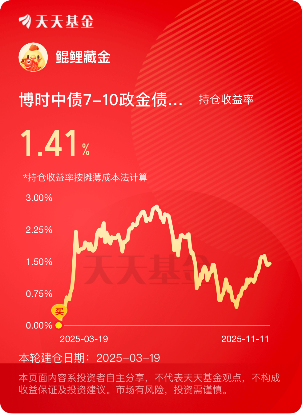 机构抢配长端利率债,政金债流动性好,这只基金近一月涨了70多个蛋,排名靠前,趋势不错。