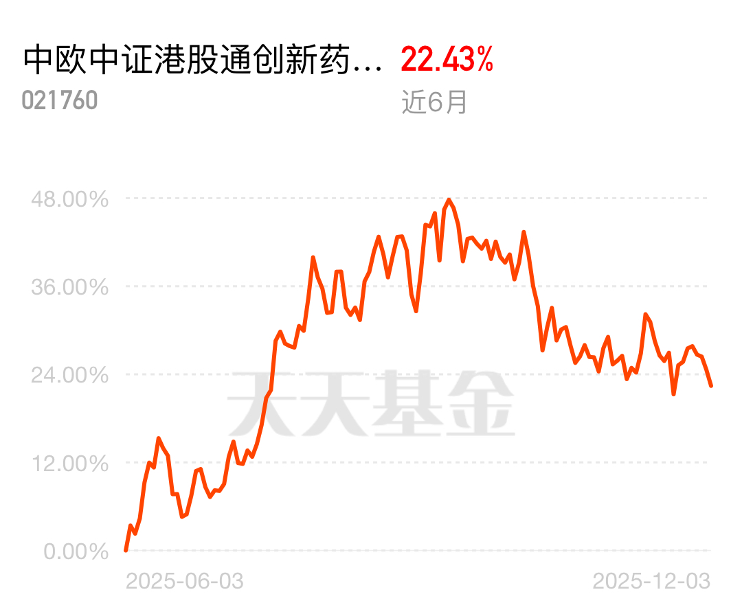 港股市场流动性边际改善,南向资金持续加仓创新药板块,低估值标的获资金托底。中欧中证港股通创新药指数发起 C 近 6 个月 22.43%,借力资金流入,估值修复提速。$中欧中证港股通创新药指数发起C$