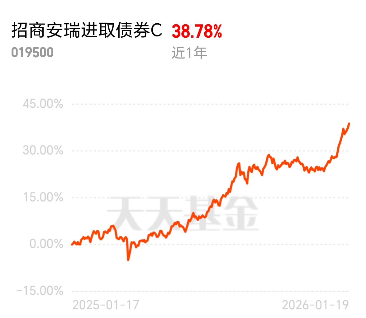 年前想锁定部分收益,又不想完全错过权益行情?招商安瑞进取债券 C 太合适了。近 1 年 38.78% 的收益比好多固收 + 都强,固收打底稳如泰山,安全性没问题,权益部分不拖后腿。$招商安瑞进取债券C$