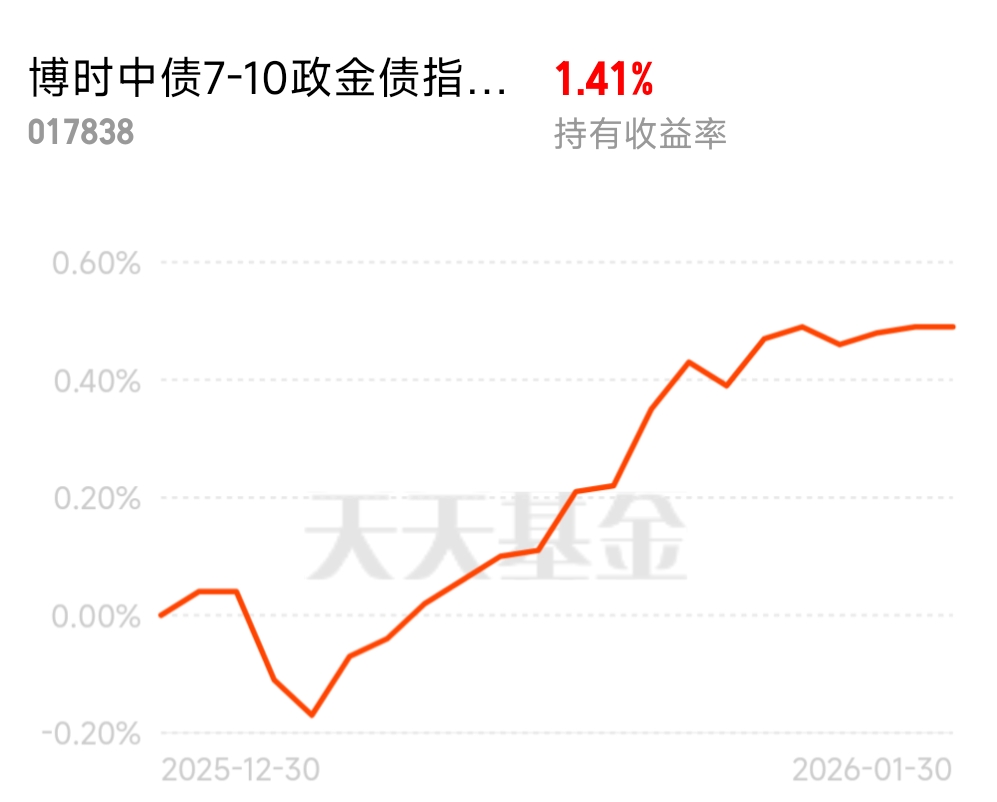 股市资金从单向涌入转向再平衡,部分资金回流债市。这基安全性好,更受瞩目,新年开局趋势不错,收蛋近50个$博时中债7-10政金债指数C$