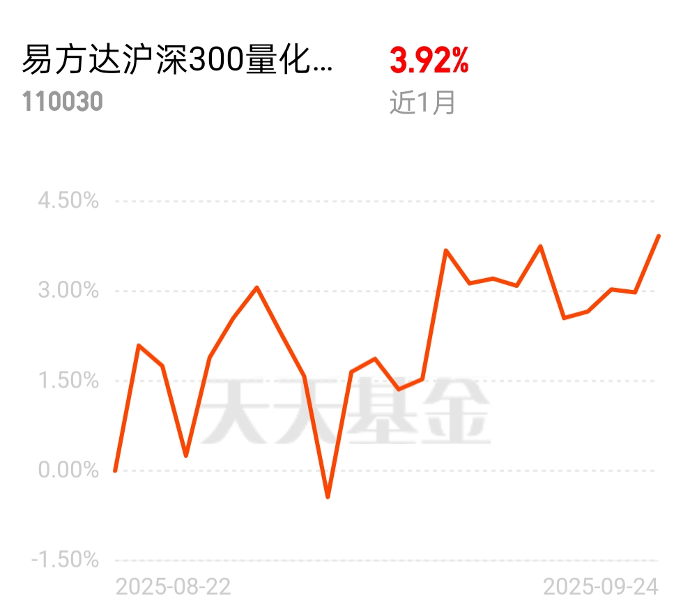 最近关注宽基增强,易方达沪深300量化增强值得看。近3个月18.06%,增强效果