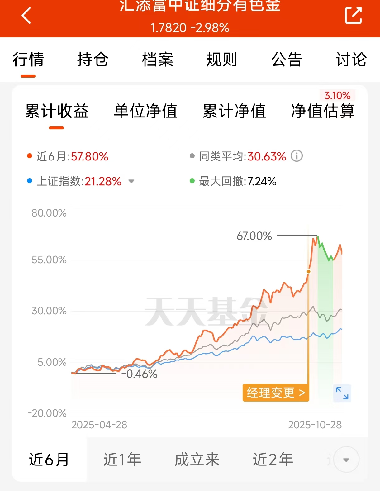 又见有色板块领跑,真是气势如虹。我持有的$汇添富中证细分有色金属产业主题ETF发起式联接C$(019165)近半年取得了57%以上的涨幅,真是选对了。它跟踪的那个指数,最大的特色就是铜的权重高,占到30%,另外黄金占比14%,这个结构在当前环境下显得很有优势。大家可能也感觉到了,现在世界范围内,对于重要金属资源的重视程度是空前的。像铜这种,新的矿山投产不容易,但需求端却可能有新的增长点出现,比如一些大型设备的更新、新技术的应用等。这种供需背景,让它的中长期逻辑比较清晰。通过基金布局,可以分散单一品种波动的风险。这种机会不常有,值得把握。#A股突破4000点!下个目标位在哪?#