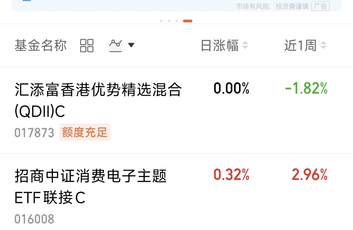 $汇添富香港优势精选混合(QDII)C$ 近一周-1.82%。