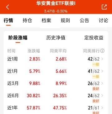 华安黄金ETF联接I是亚洲规模最大黄金基,近一年涨近58%,低费率长期跑赢,7天