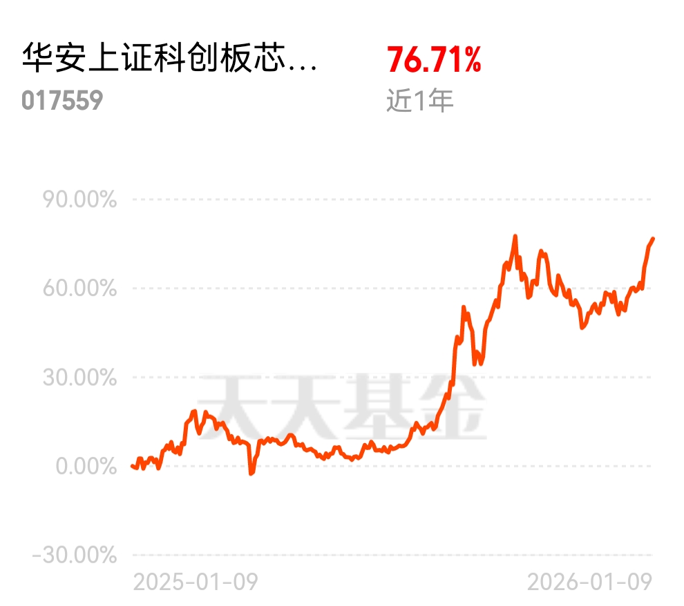 $华安上证科创板芯片ETF发起式联接A$ 近 1 年 76.71% 收益,国家大基金加持,持有超稳