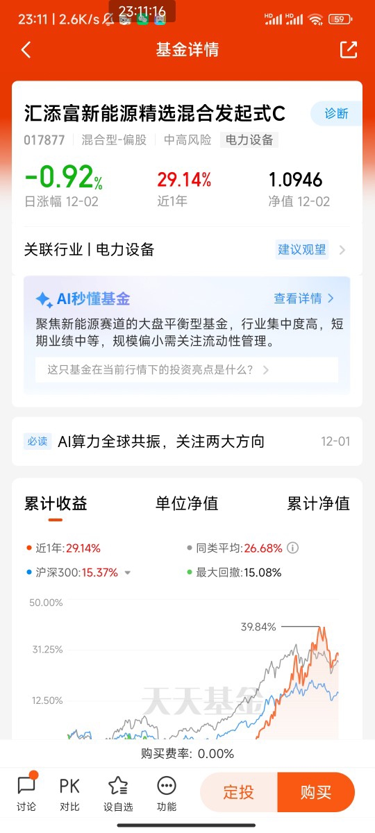 #观点搭子团火热招募中!# #汇财友道# $汇添富新能源精选混合发起式C$