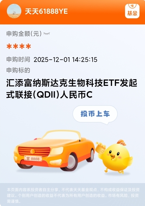 #晒操作# 经过前期调整,目前市场的投资性价比还是很不错的,$汇添富纳斯达克生物科技ETF发起式联接(QDII)人民币C$ 每日额度1000元,正好可以开启每日定投计划。