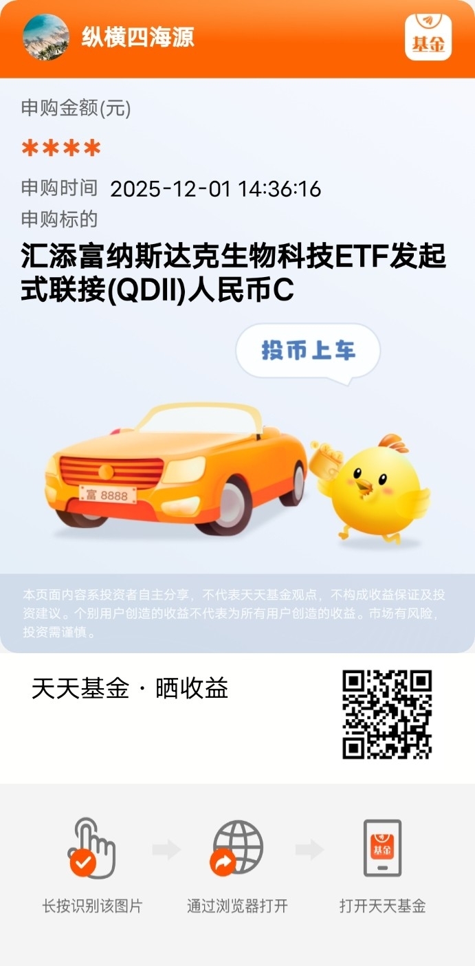 $汇添富纳斯达克生物科技ETF发起式联接(QDII)人民币C$ 继续加仓跟进上涨的势头!