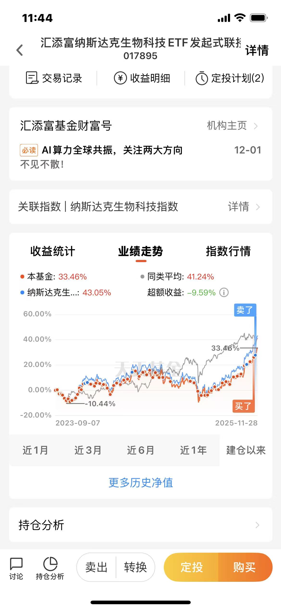 不过经历市场毒打后我开始分散配置;两年前就定投了$汇添富纳斯达克生物科技ETF发起式联接(QDII)人民币C(OTCFUND|017895)$