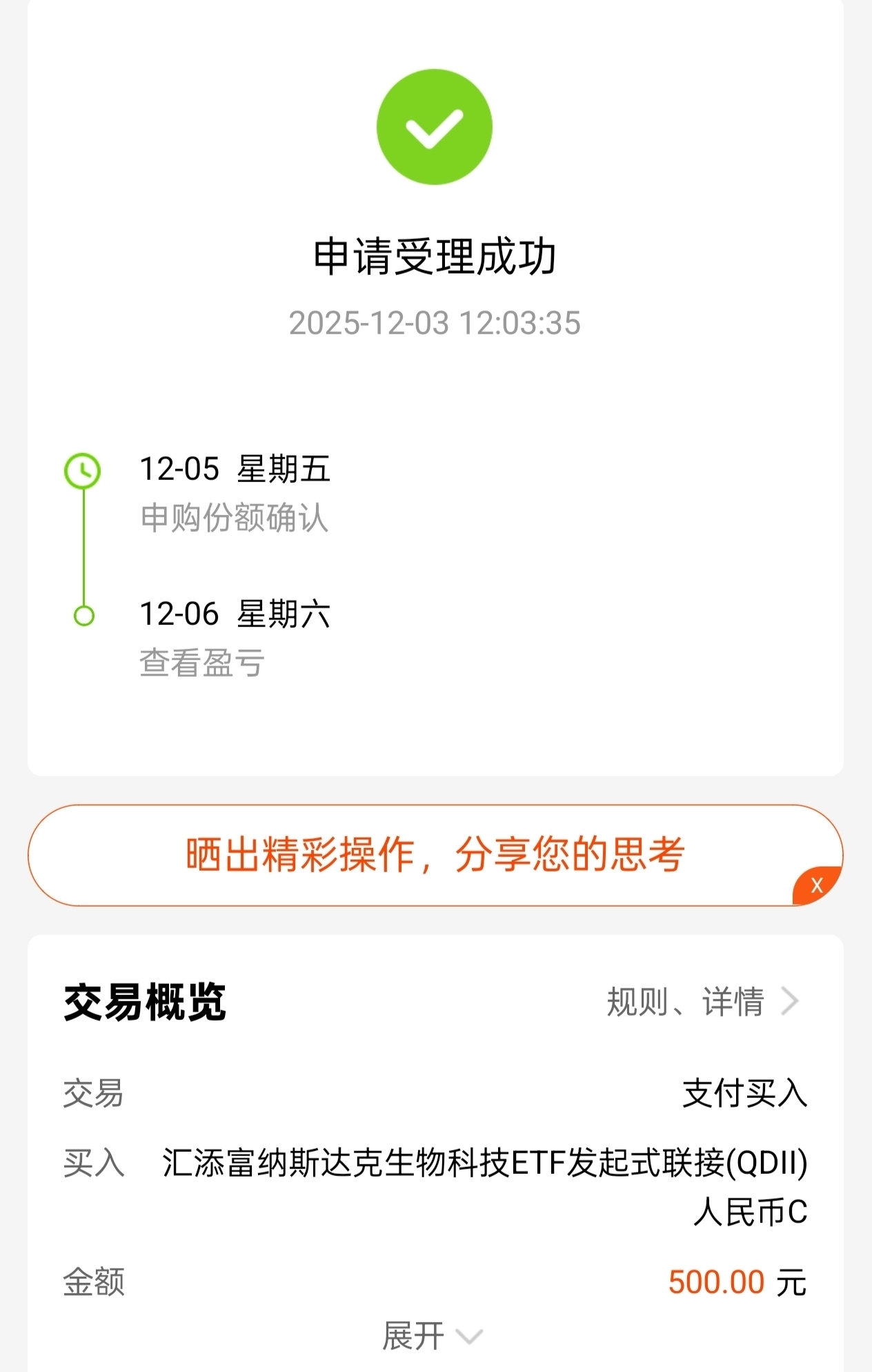 这只基金主要投资全球生物科技领域的龙头企业,和行业行情联动紧密。现在每天限购1000元,我觉得挺适合小额分批买入。我打算每天定投一点,慢慢积累份额,这样既能平摊成本,也能减少市场短期波动的影响。