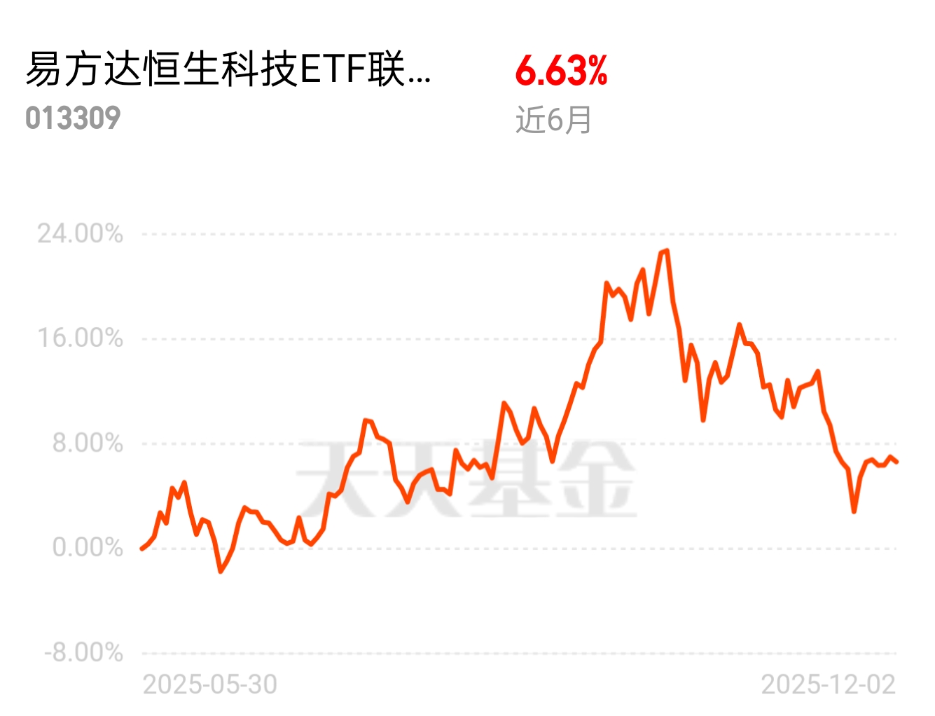 全球资金回流新兴市场科技股,恒生科技凭借估值优势成配置热点,成交活跃度提升。易方达恒生科技 ETF 联接 (QDII) C 近 6 个月 6.63%,现在布局不追高,后续修复空间值得期待。$易方达恒生科技ETF联接(QDII)C$