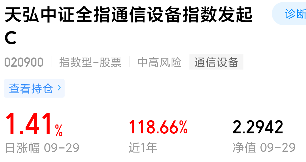 天弘的这只基金追踪通信产业指数的表现,新易盛、中际旭创、中兴通讯、工业富联、天孚通信等通信产业的科技股都有覆盖,整体的表现也非常好,基金近三个月大涨了85.03%,近六个月大涨了107.08%,近一年涨幅达到了118.66%,赚钱效应非常好,趁着下跌我今天再来增持一波筹码。