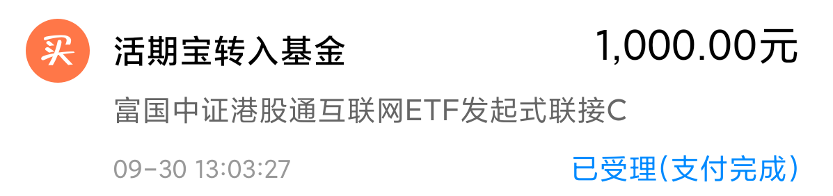 买进1000的 $富国中证港股通互联网ETF发起式联接C(OTCFUND|014674)$