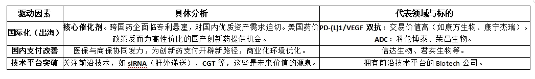 投资逻辑:重点关注拥有差异化临床数据、强大海外合作能力(BD能力)和前沿技术平台的生物科技公司。