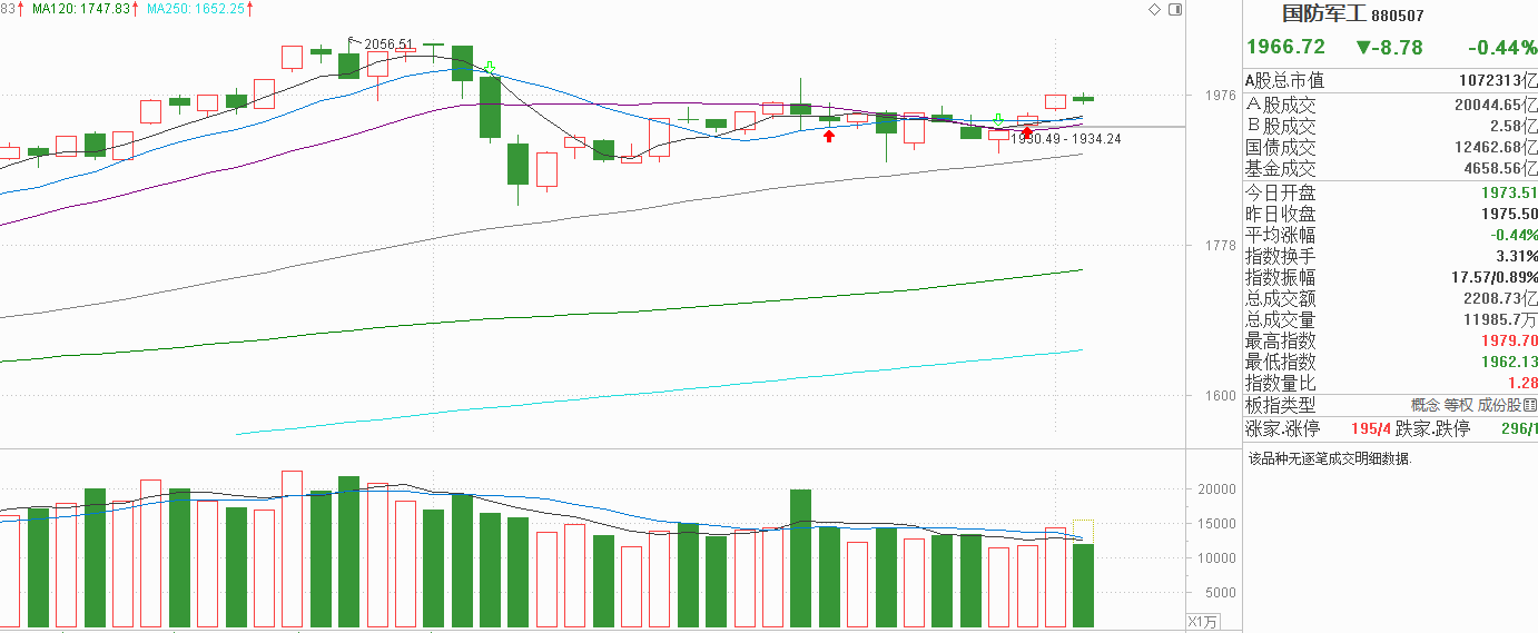 家人们!今天必须得重点讲讲那个让人又爱又恨的军工!昨天小阳反弹开始走强,今天窄幅震荡也没有走弱,连续四天表现还是阳线,叠加5天线、20天线都已经收复,真有可能走出另类的一波流行情。目前军工的箱体区间是60天线与8月27号的高点,当下市场重心还在箱底附近,与昨天分析的一样,如果军工无法走强再次回到箱底,向下空间并不大而且有均线粘合的支撑,向上反弹的话先不论能不能再创新高,就算回到27号的高点,箱顶价差空间也是挺大的。当然还没有算突破的机会。近期指数波动比较大,军工能走出独立行情,我觉得背后是有主力控盘的,而近期军工的震荡平台就在附近,说明如果有主力控盘,主力的成本区也在附近,无论从震荡市还是一波流来看,军工当前是一个相对低位的潜力品种,不能因为人工智能与资源类品种是主线,就忽略军工的存在。