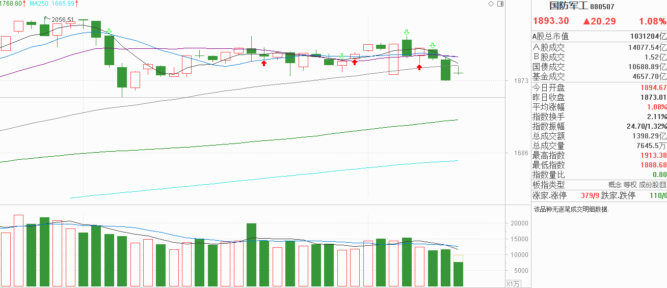 军工:上周跌破60天线,今高开无力回天,最后抵抗还是跌势加剧?