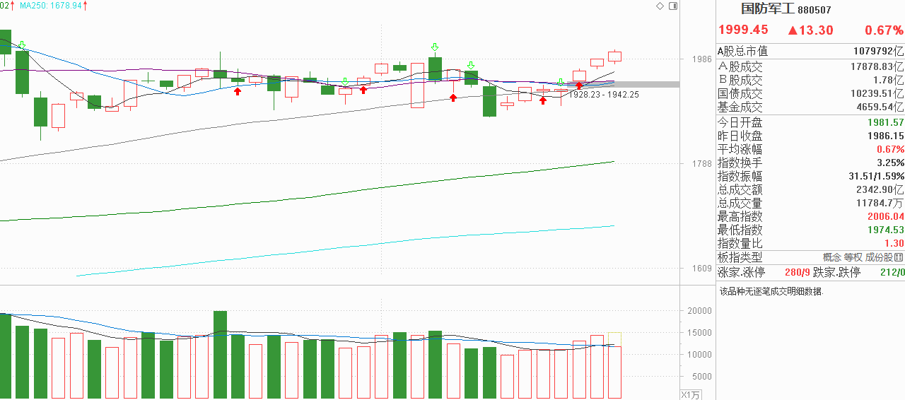 我的天呐!各位军迷朋友们注意了!军工这是要玩大的啊!昨天高开高走小阳反弹,结合上周五跳空高开中阳反弹,一波流的起手式出现了,今天军工虽然是低开的,但继续走高,更确认了一波流的特征。今天军工小阳反弹,把10月14号的高点突破了,小箱体的箱顶阻力收复,军工大概率会向8月27号的大箱顶尝试。由于一波流的势头还在,如果军工可以越走越强甚至是加速上行,不排除军工直接突破8月27号高点开启新周期,如果一波流力度不够,在27号高点遇阻回落,就当成是箱体震荡到位离开。上周五还没有看出一波流启动的话,昨天应该就要判断出来,到今天才看出是一波流节奏上是很被动的,但还在一波流的启动周期,越早相信安全垫越大,真到了突破27号高点才看出是一波流来追涨的话,性价比就不高了。从目前看,只要军工不出现阴线回调,我会继续看好!