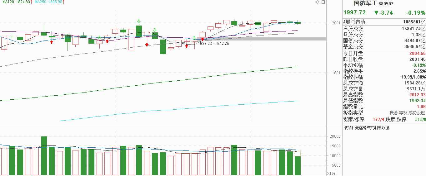 军工的朋友们,都给我瞪大眼睛看好了!昨天窄幅震荡还在5天线上方,今天也是窄幅震荡,这种走势太怪了,一个非常活跃的品种居然可以在上一次一波流后持续横向震荡9天,把5天线、10天线都磨平了。比起9月回调后无序的波动,近期我觉得主力的控盘水平又提高了。按10月24号至30号4连日阳结束一波流后,因为还在震荡市中,冲高回落我认为是符合预期的,如果不回落像11月5号低开高走中阳反弹也是有可能开户第二次一波流也能形成新的做多信号。主力既拒绝向下回调就应该是看涨的,但没有把握机会继续横向震荡又是看淡的,军工走成这样我也不知道问题出在那里,但下有支撑,又不上行,只能说军工近期没有波动,也就没有价差博弈的空间,什么时候打破平衡,或许才会有新方向吧。