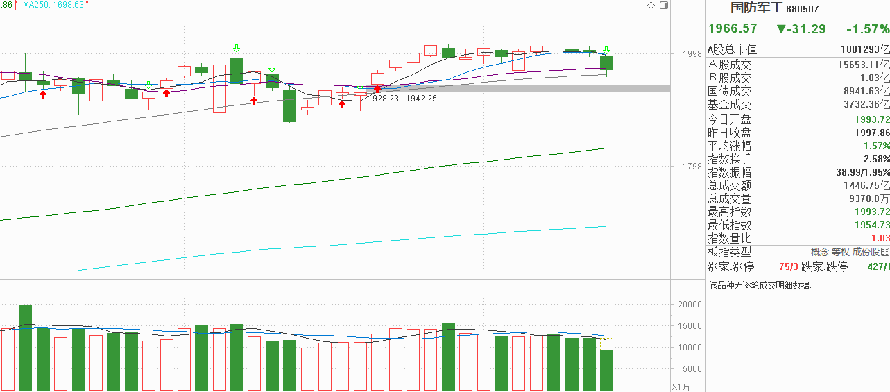军工朋友们,得注意了!昨天军工怎么走的?窄幅震荡还是在5天线上方波动,横向波动两周我还以为主力有能力控制抛压,结果今天主力也受不了选方向了,是低开低走中阴调整把20天线击穿了。上一次军工回到20天线是11月5号,当时是低开后马上高走中阳反弹回到5天线,今天反包5号中阳线当然是主力在离场的表现,毕竟军工在一波流高点横向震荡了三周,本就多空平衡,有外力打破平衡,就会沿着打破平衡的方向走。本次一波流启动于10月23号,24号的跳空缺口无疑是本次抛压要测试的支撑区域。这个区间离目前还有比较大的距离,如果军工真属于箱体震荡,我认为在箱底附近再参与比现在抢反弹更安全一些。今天主力选了方向是下行,虽然也不悦,可市场总是对的,没想到军工还是大箱体震荡,下一次再回到这个平台我一定会离开,不指望向上突破了。