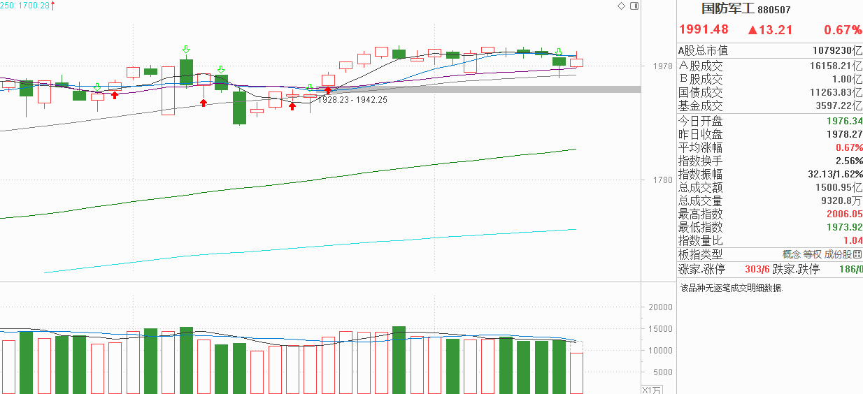 军工的朋友们,都给我注意了!昨天中阴调整至60天线一度破位,尾盘回升拉出比较长的下影线,20天线失而复得,把横盘三周的筹码资金吓个半死。今天军工低开在20天线上方小阳反弹把昨天的余下阴线反包,再回到原来的横盘平台,考虑到11月5号军工直接低开高走小阳反弹后并没有开启一波流走强,今天这种走势应该还属于多空平衡,持续震荡三周了都这样,不需要重点关注。如果明天可以继续小阳反弹向上突破,就看成是连续两天有力度的资金流入开始看涨启动一波流。现在就是不知道军工突然中阴调整后回升到底是主力在护盘还是洗盘,两者性质完全不同,洗盘的目的是突破,是要跟上主力的,护盘就是打酱油的,只维持横盘状态,过度热情就不对了。