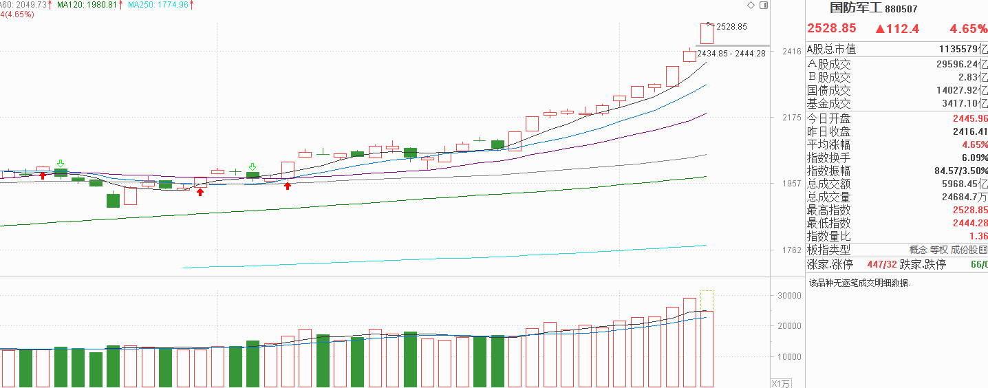 咱们必须得聊一聊火到爆的商业航天!商业航天上周五高开高走中阳反弹,叠加上周四是中阳反弹,连续两天有力度的中阳表现,当然是资金流入的积极信号,而且这一次流入与前期风格又不一样,感觉新资金的风格更激进一些。今天商业航天继续跳空高开后中阳反弹,第三天单边走强,已经远离5天线两根中阳线了,短线获利资金非常多,但由于这一次新资金主力与机构,去年的游资完全不一样,只要资金源源不断的流入,说不定还有更高的位置出现。现在商业航天已经远离5天线进入主升浪,我不知道什么时候才会滞涨,但顺势而为我还是懂的,只要没有看到抛压,我会继续看好商业航天,不追涨不代表离场,守住筹码或许也是一种本事吧。