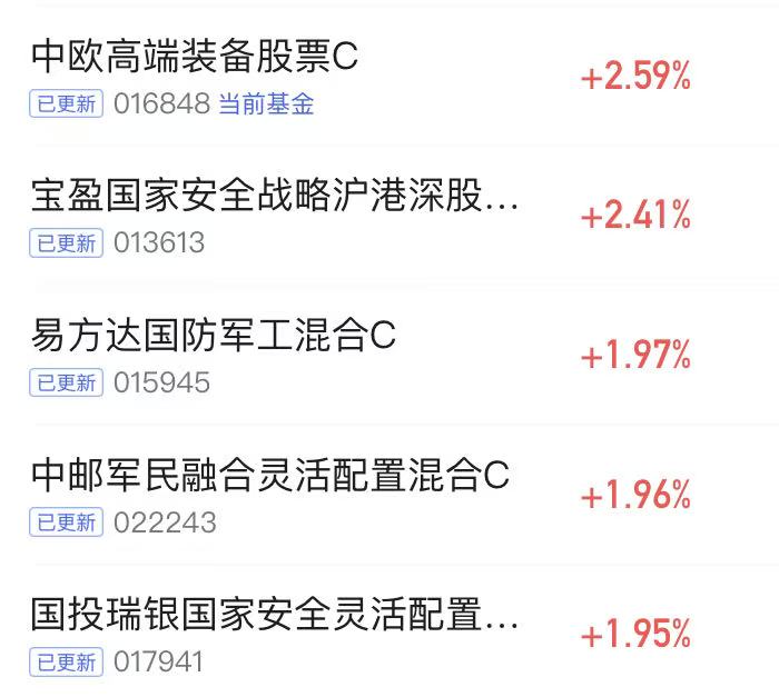 最近军工板块延续强势,已经迎来五连涨,整体表现太让人振奋了。随着政策支持力度加大,以及国内外安全局势的推动,军工产业链的景气度持续攀升,资金涌入表现出强烈的投资信心。中欧高端装备股票C今日上涨2.59%,继续跟随军工板块的强势行情,体现了基金经理在行业选择和个股配置上的精准把握。长期来看,军工板块的增长潜力仍然值得关注。