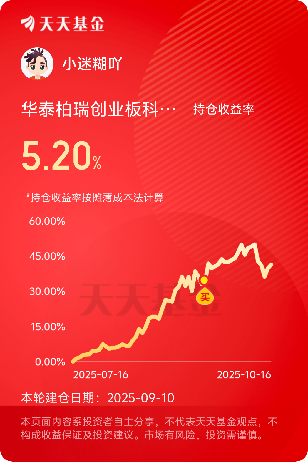哇!$华泰柏瑞创业板科技ETF发起式联接C$ 今天又红了,涨了1.09%!看了眼持仓,近三个月居然悄悄涨了41%多,这波科技风跟对了,继续拿着!