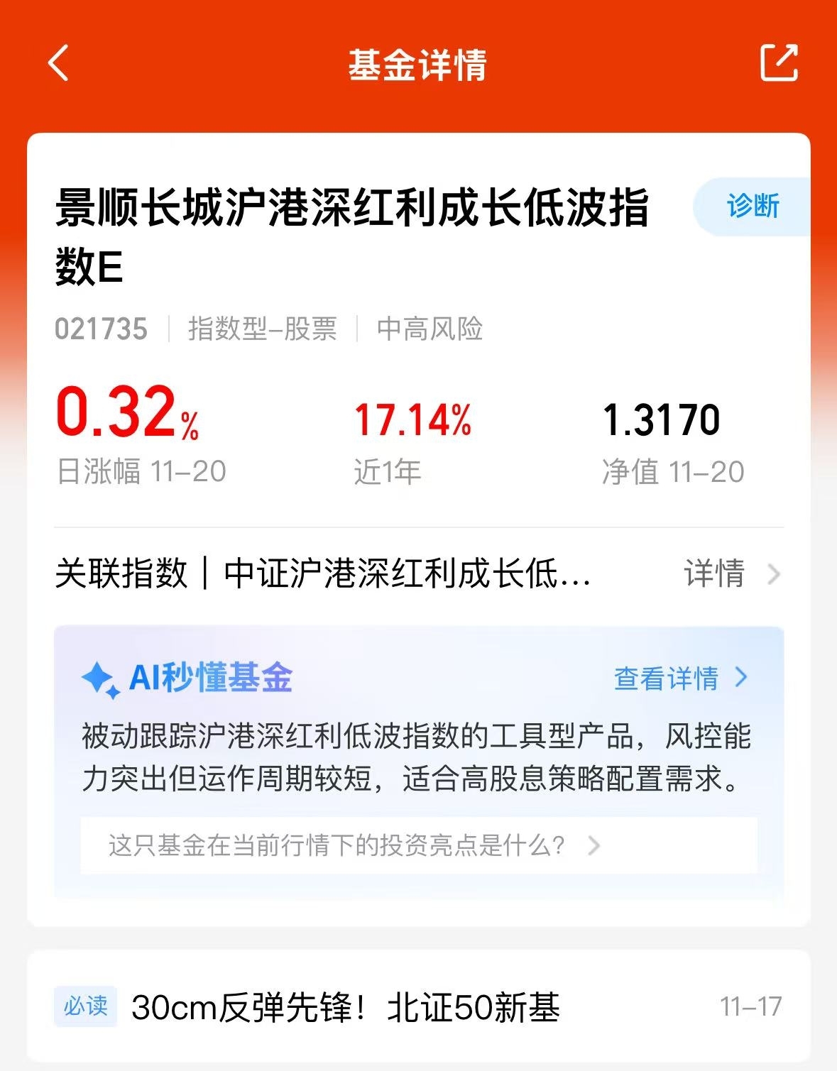 降息预期降温、科技高估值压力大,这时候港股估值优势就体现出来了,我买的这个景顺长城沪港深红利就是A股港股红利都有,红利的机会起码能持续到明年初$景顺长城沪港深红利成长低波指数E$ #观点搭子团火热招募中!#