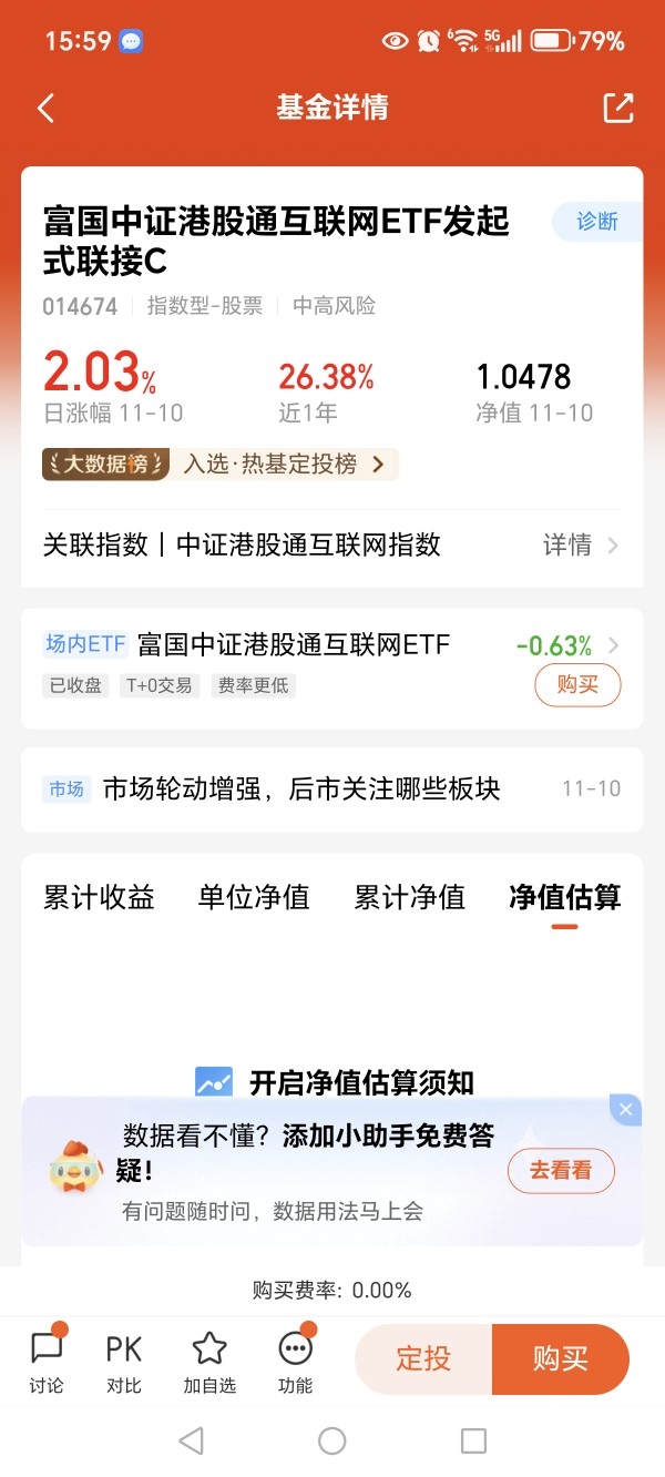 除了景顺长城创业板50,个人还配了点富国中证港股通互联网ETF联接C,看中它专注港股互联网龙头,估值低位比过去五年78%的时间都低,106亿规模不飘也稳。$富国中证港股通互联网ETF发起式联接C$