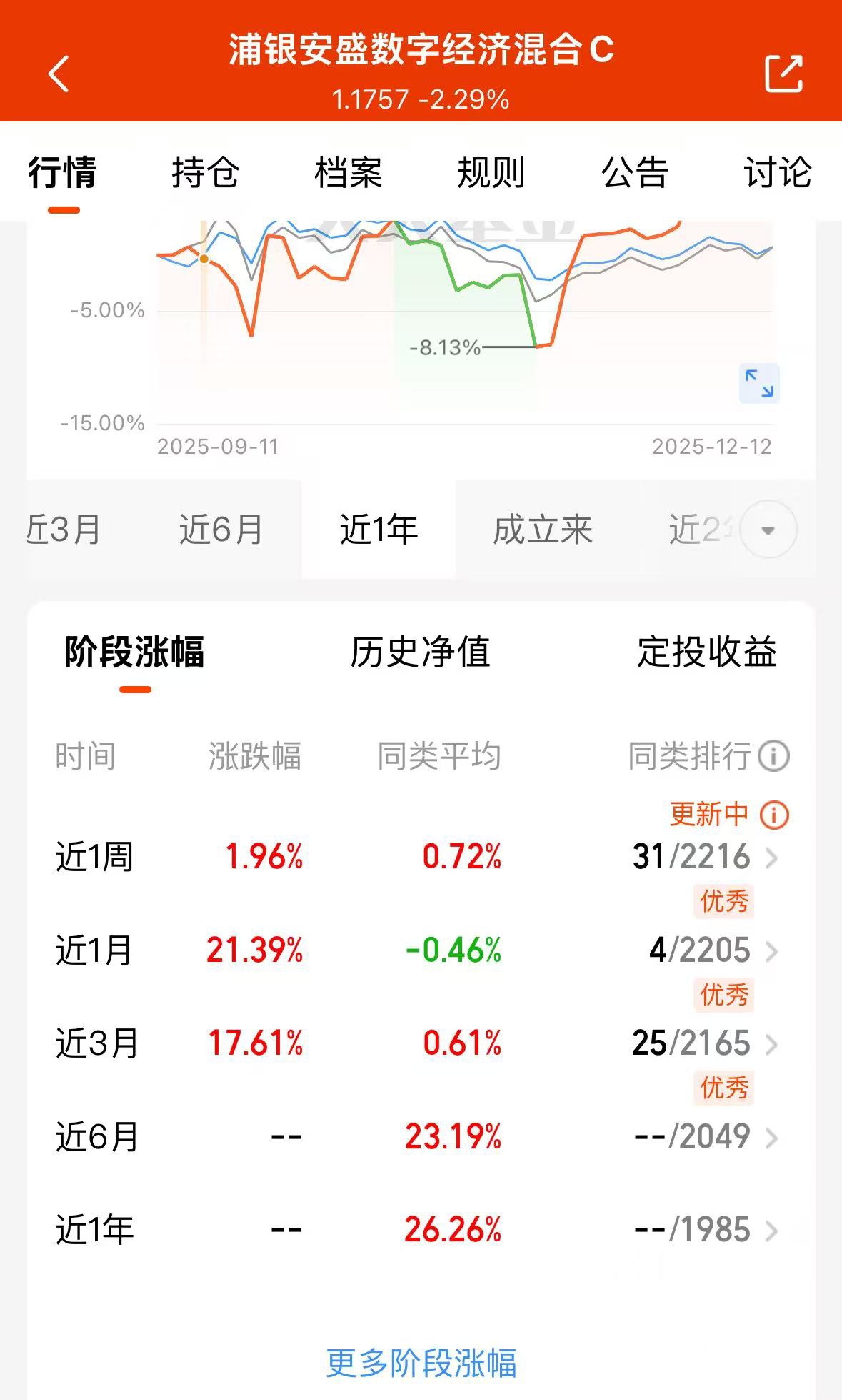浦银安盛数字经济,跌的少的CPO,近一周涨了十几个点了,年底补涨就靠你了!$浦银