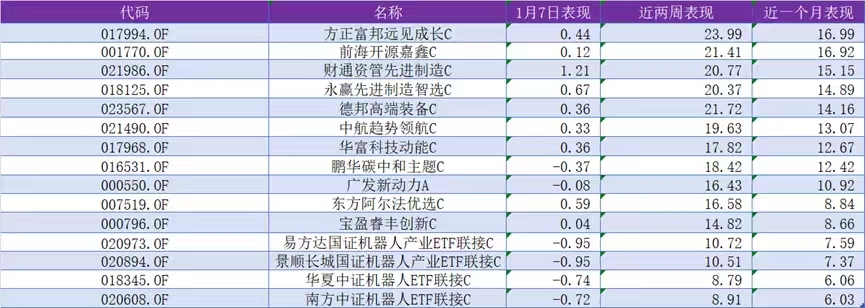 今天市场风格开始变化,机器人板块波动也比较大,但作为科技主线之一,午后可能还有上拉拉吧。最近一些聚焦科技成长方向的基金表现相对活跃,比如远子近两周涨幅接近24%,前海、德邦等产品同期也有不错的表现。相比之下,部分跟踪机器人指数的被动产品近一个月的走势略显平淡,这也说明,在结构性行情中,主动管理型产品在把握细分机会上可能更具备一定灵活性吧。
