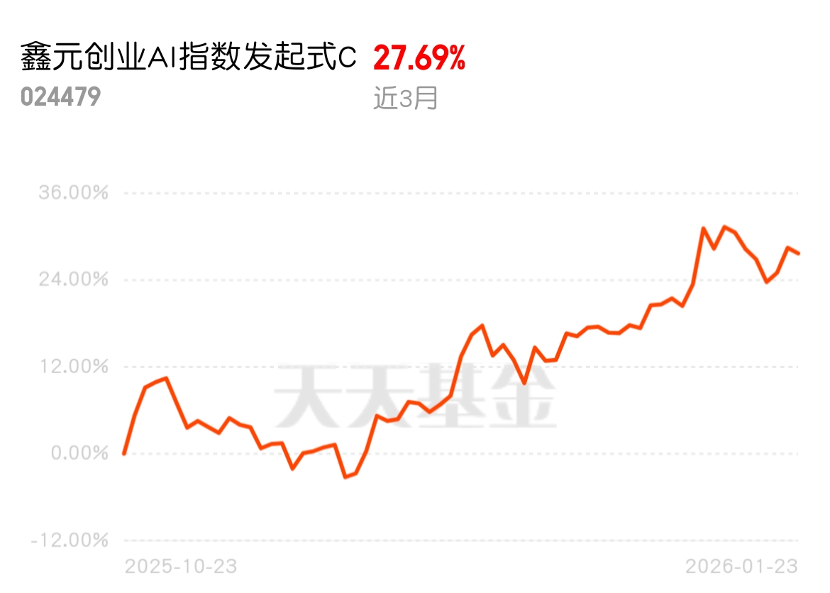 $鑫元创业AI指数发起式C$ 这只基近3个月涨了27.69%,AI创业赛道的潜力,它是真吃到了!