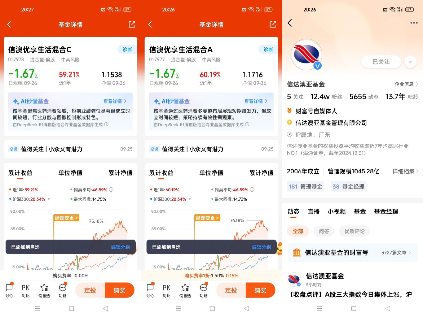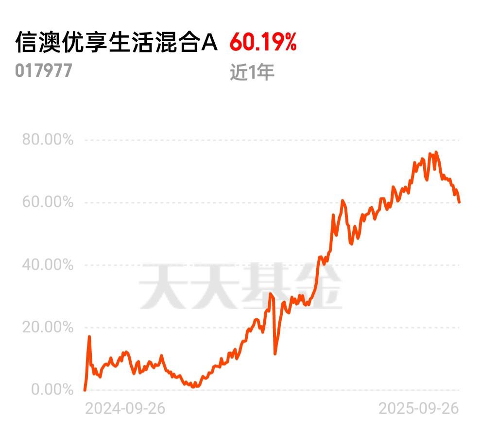 信澳优享生活混合A的核心优势在于“跨市场布局+主题聚焦”的双重特性,完美适配当前市场的结构性机会。从产品设计来看,该基金股票资产占比60%-95%,其中港股通标的股票占股票资产比例可高达50%,这种灵活的A+H配置机制,使其既能捕捉A股市场的产业政策红利,又能依托港股市场的估值优势与流动性弹性把握超额收益。截至2025年9月,基金最新净值为1.1716,近12个月波动率达60.19%,在平衡型基金中展现出更强的成长爆发力。