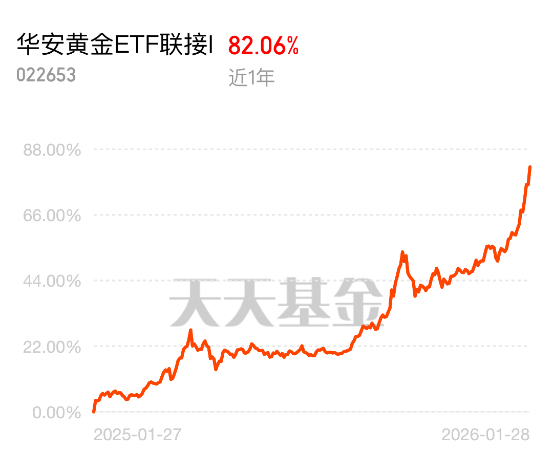 $华安黄金ETF联接I$单日涨3.37%,7天免赎,近一年黄金指数收益登顶,闭眼