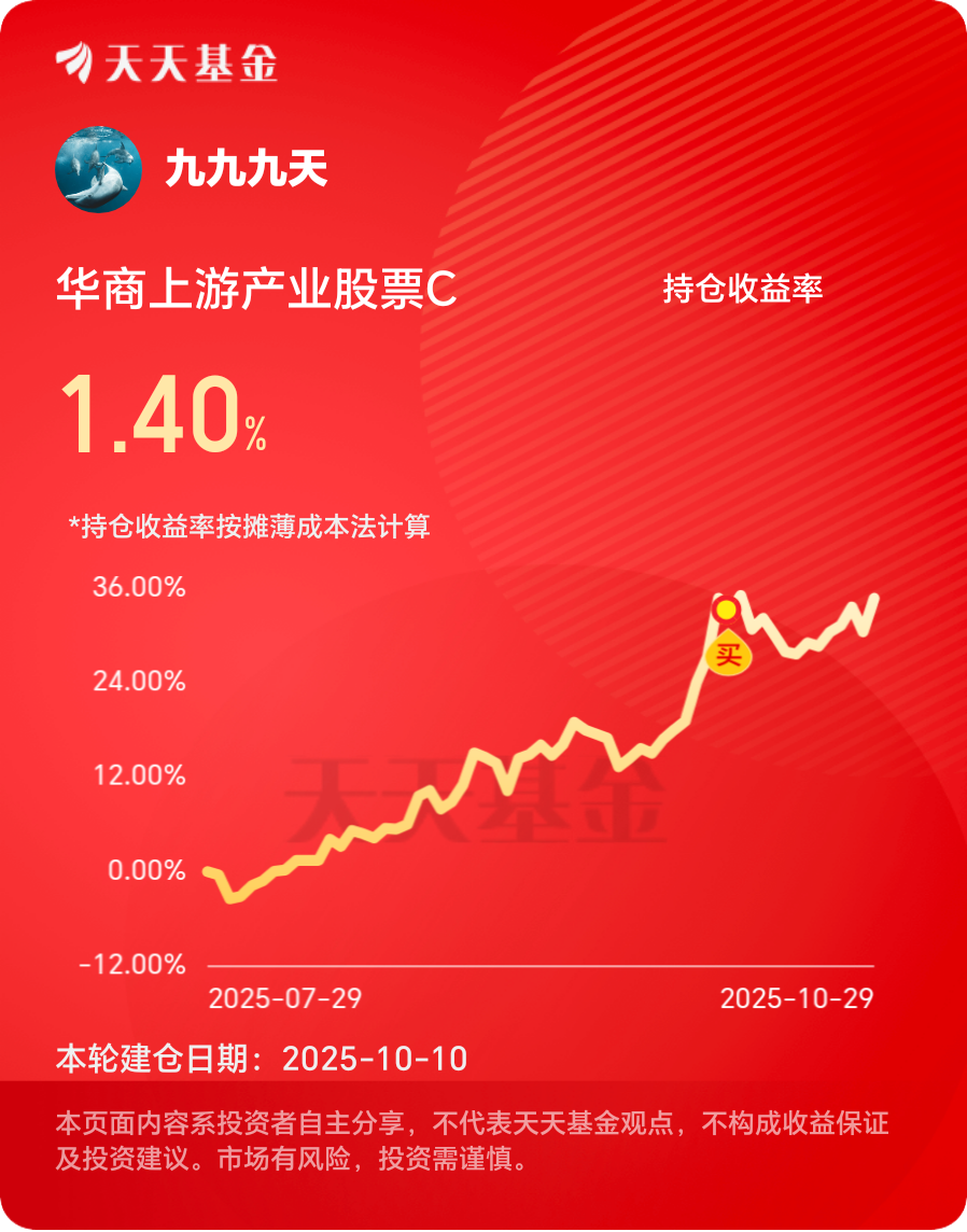紧抓上游产业潜藏的投资机会,同类产品里业绩表现出众,投资性价比高。#晒收益#