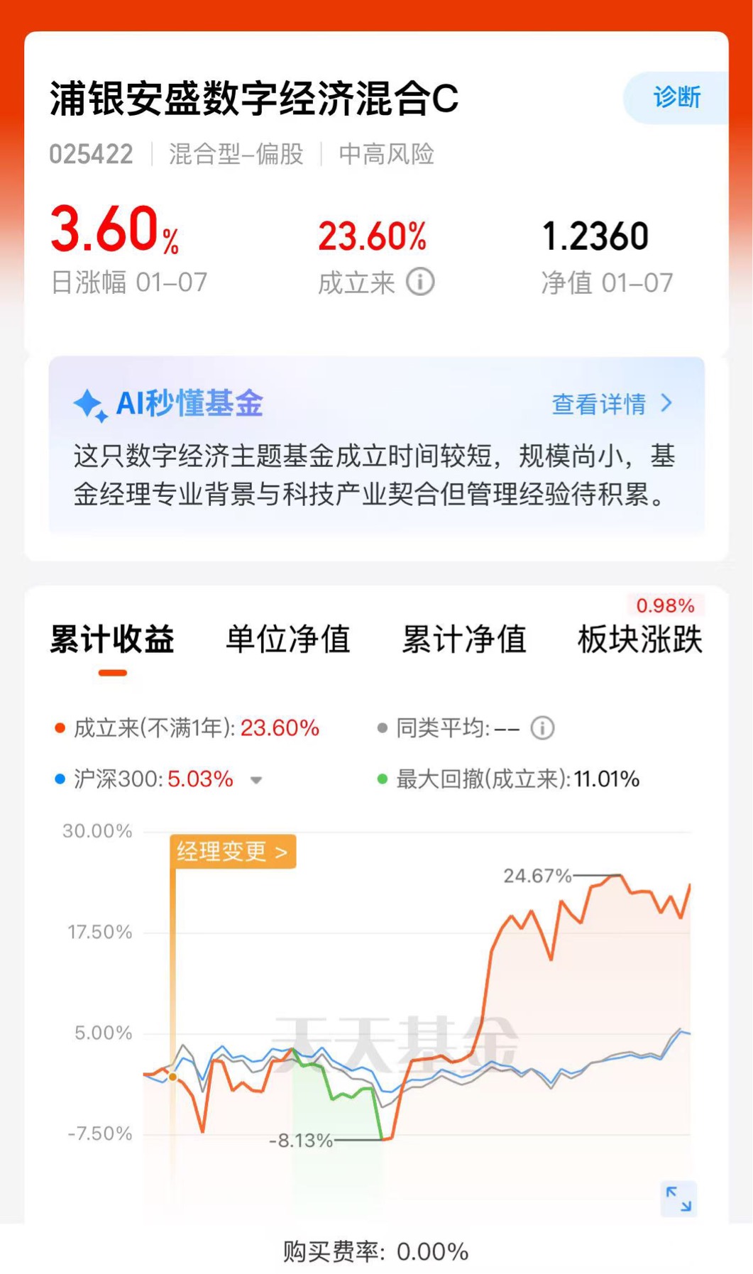 $浦银安盛数字经济混合C$CPO新晋卷王,今天红的很突出,大涨3.6%~新年补涨