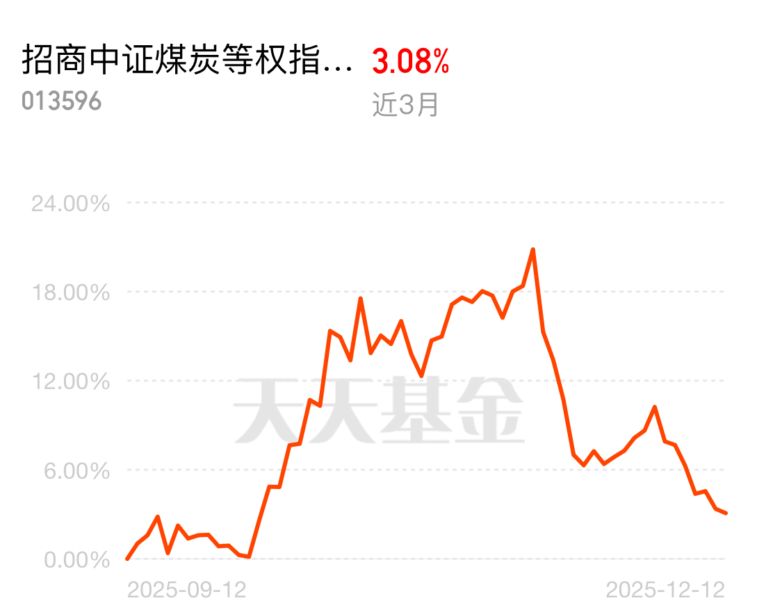电厂日耗煤量环比上涨,冬储补库已经启动,煤炭行业之前的政策利好还在发力。招商中证煤炭等权指数 (LOF) C 近 3 月涨 3.08%,等权能分散个股风险,四季度周期向上,加上能源强国托底,后续表现有支撑。$招商中证煤炭等权指数(LOF)C$